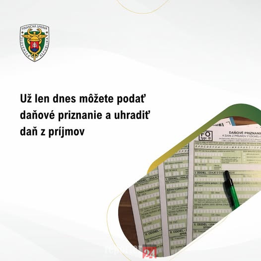 Už len dnes môžete podať daňové priznanie a uhradiť daň z príjmov